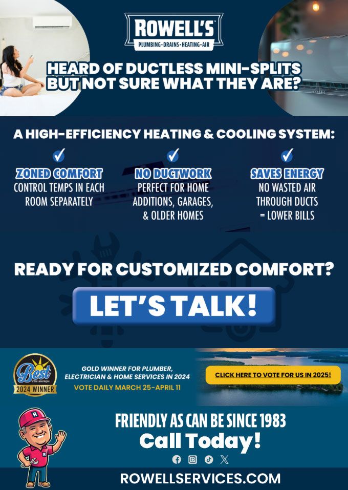 "Friendly As Can Be Since 1983!" When you need help with your plumbing, drains, heating, cooling or electrical in New London, you can always rely on Rowell's Services! Call us now or book online!